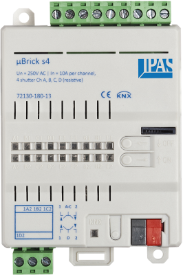 µBrick are actuators for sun protection and shading. The small design allows decentralized installation in ceilings, floors or installation ducts, so that the installation effort can be significantly reduced. µBrick actuators with binary inputs additionally allow the connection of window contacts, potential-free switches and sensors. Independent of the function selection, status objects provide the current switching status or the position of the blinds or shutters. The firmware of the actuators can be updated using an update SD card if necessary. The additional functions that can be used independently of the inputs and outputs make µBrick switching actuators decentralized switching centers for all automation tasks in buildings.