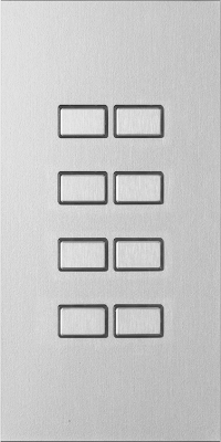 Largho control panels combine the highest functional demands in a clearly structured format. The special mounting dispenses with visible fastening elements, so that Largho control panels lie almost flush on the wall. The standard module width of 80 mm and module heights of 80 to 230 mm provide sufficient space for individual design. The rectangular buttons can be designed without or with RGB status. Largho buttons with RGB status are illuminated all around, so that each button can be located even in the dark. All Largho control panels have an acoustic signal generator to support button actuation or to signal alarms.